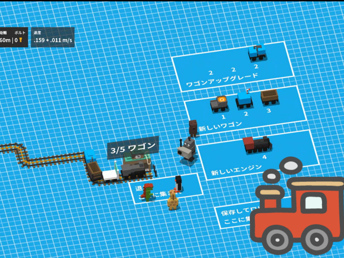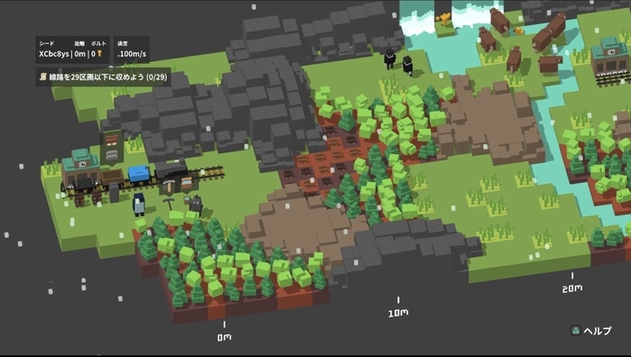 木材と鉄を集めてレールを作り、そのレールを伸ばして汽車を脱線せずにゴールの駅まで運びます