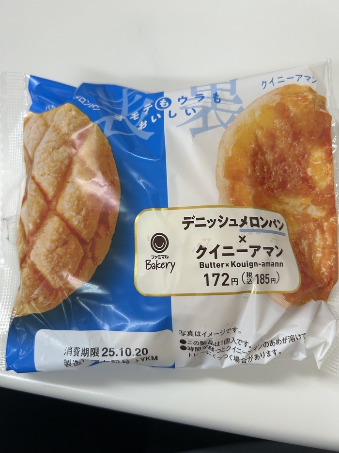 最初はタテ半分にメロンパンとクイニーアマンが分かれているのかと思っていたのですが、その商品の名の通り