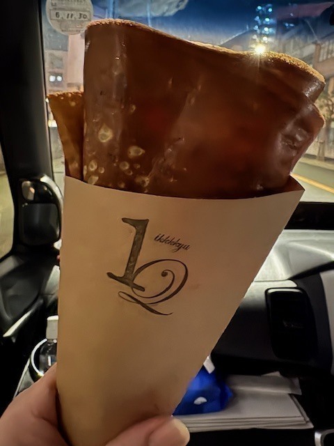 美味しいものシリーズ☺️ 就労継続支援B型事業所 2025.11.01 やさしさまんてんの支援員北野です☺️ 家から15分くらいのところに出来たクレープ屋さんがずっと気になってて買い物帰りに寄ってみました。 お店の中でも食べれるようになってましたが車を停めていたのでテイクアウトにしました! 私の好きなメニューはバターシュガーです! 生地がパリパリで美味しかったです☺️ 夜に開いているので需要が増えそうです😁❤️