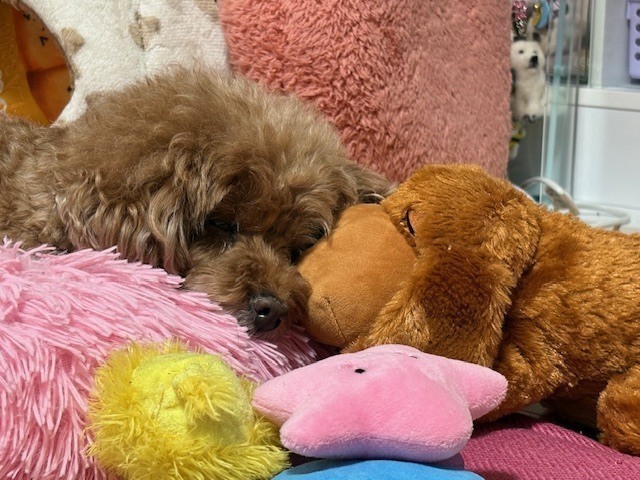 え~!? 就労継続支援B型事業所 2025.11.13 やさしさまんてんの支援員北野です☺️ 最近急に寒くなったりしてみなさん体調はいかがですか? 巷ではインフルエンザが流行しているようですね💦 本日は職員も体調不良が多くなっております💦 私も昨日から喉が痛いのでうがい手洗いを念入りにやっています。 うちのワンコは寒くなると布団に入って来るようになります。 ぬいぐるみに引っ付いてお昼寝タイム💤